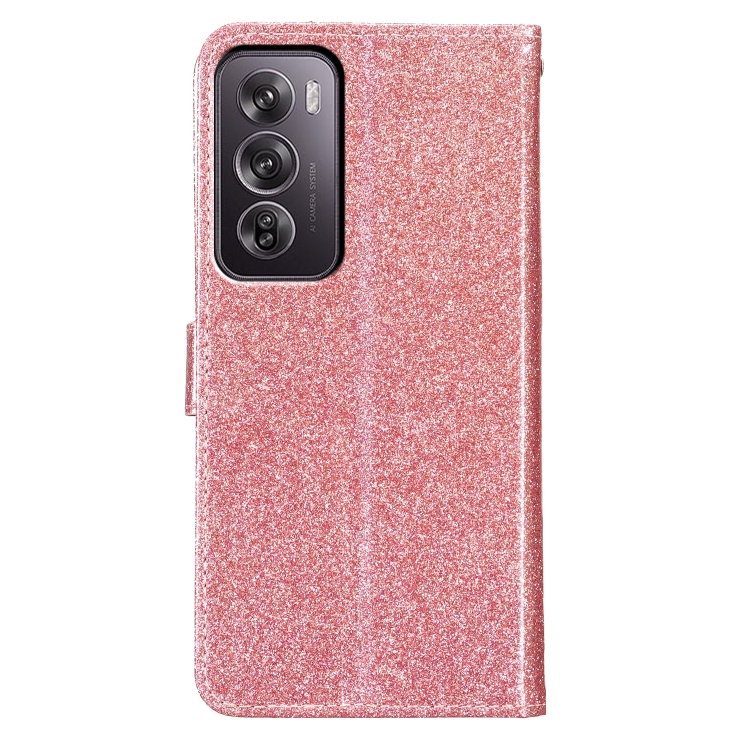 Funda de Cuero con Tapa y Purpurina para Oppo Reno12 Pro (Oro Rosa)