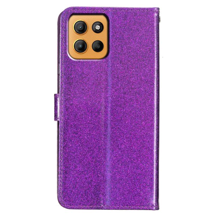 Funda de Cuero con Tapa y Purpurina para Motorola Moto G15 (Morado)