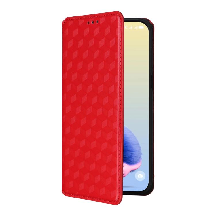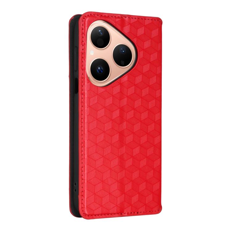 Funda de cuero con tapa y textura de cuadrícula cúbica para Huawei Pura 80 5G (roja)