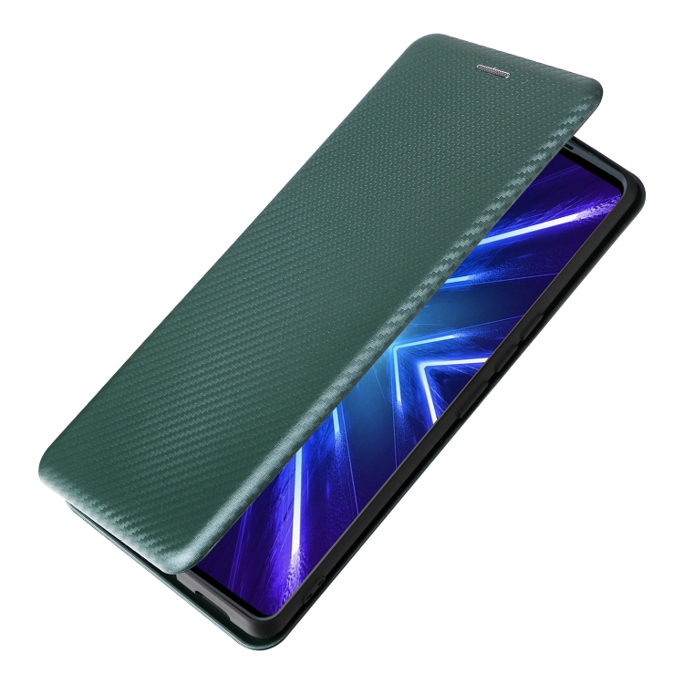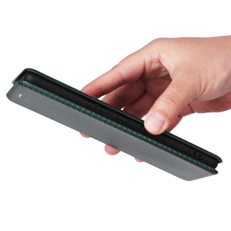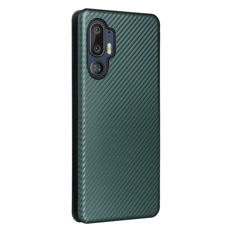 Funda de Cuero con Tapa y Textura de Fibra de Carbono para HTC U24 Pro (Verde)