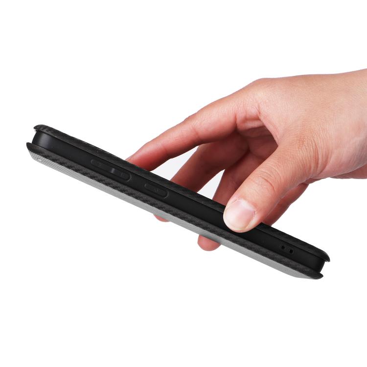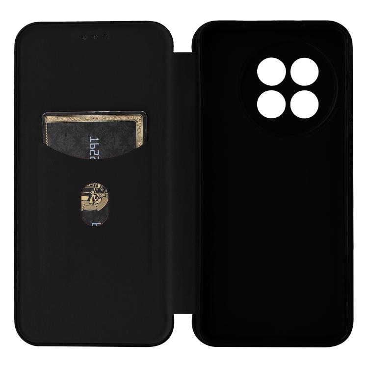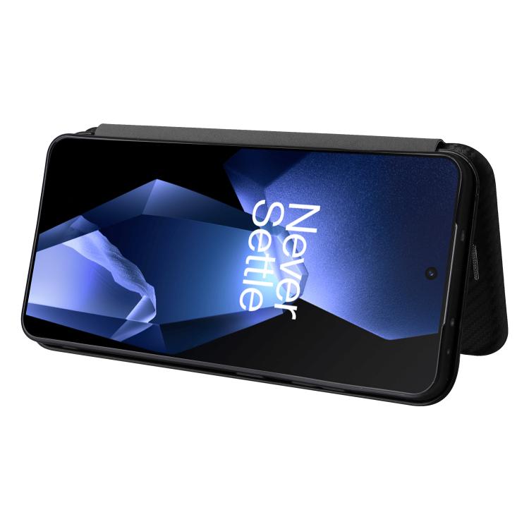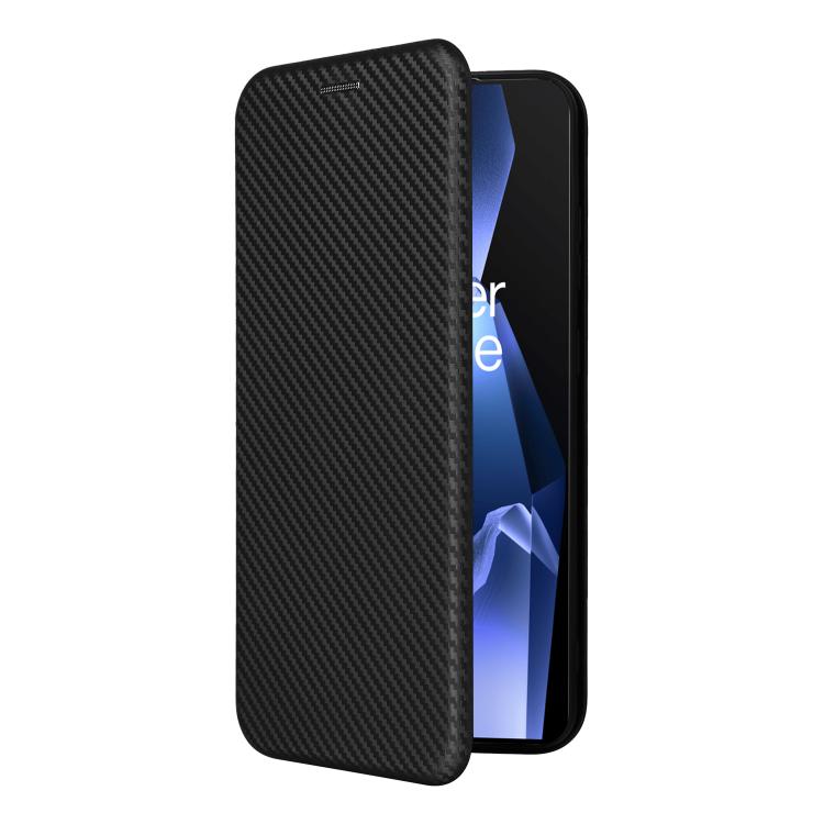 Funda de Cuero para OnePlus Ace 5 Pro con Tapa y Textura Fibra de Carbono (Negra)