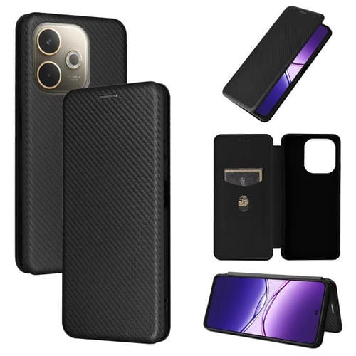 Funda de Cuero con Tapa y Textura de Fibra de Carbono para Oppo A5 Pro 5G (Negro)