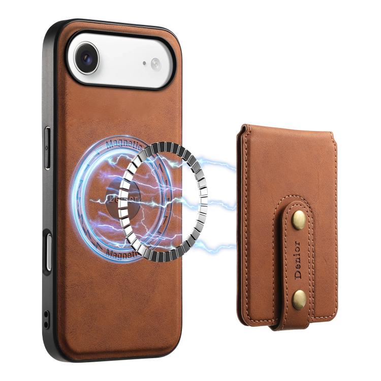 Funda de cuero con tarjetero magnético MagSafe para iPhone Air Denior D14 NK con diseño retro (marrón)