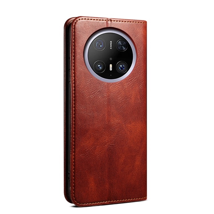 Funda de Cuero Crazy Horse con Cera de Aceite para Huawei Mate 70 5G (Marrón)