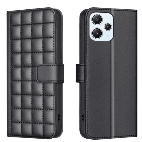 Funda de Cuero con Textura Cuadrada para Redmi 12 4G (Negra)
