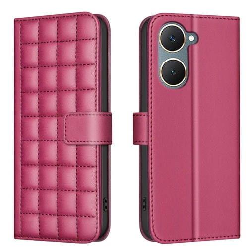 Funda de Cuero con Textura Cuadrada para Teléfono Vivo Y03 4G Global (Rojo)