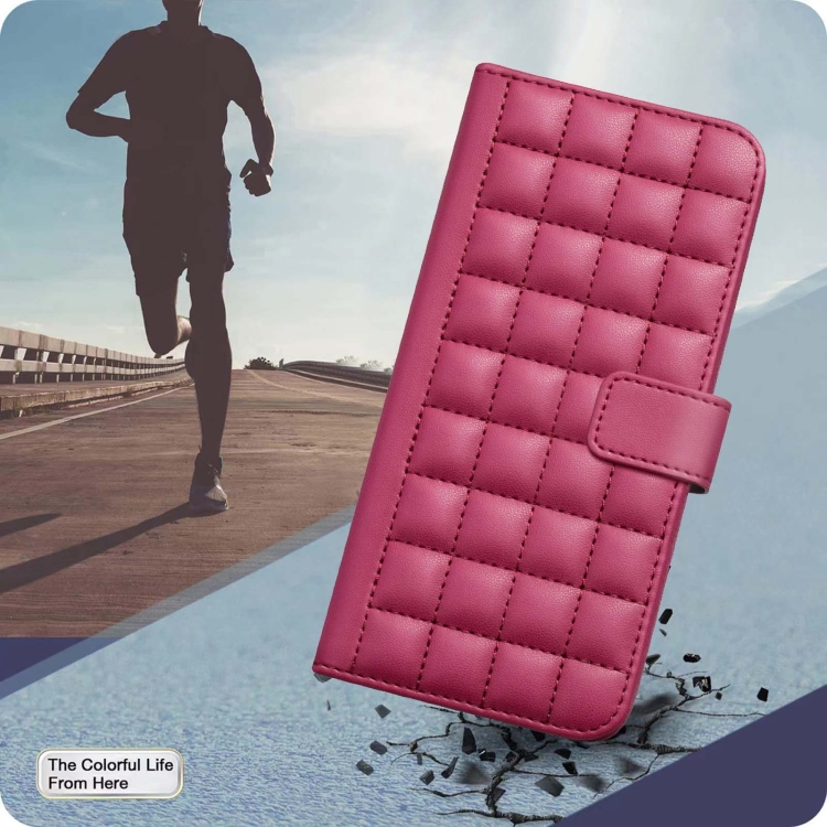 Funda de Cuero con Textura Cuadrada para Teléfono Vivo Y27 4G (Rojo)