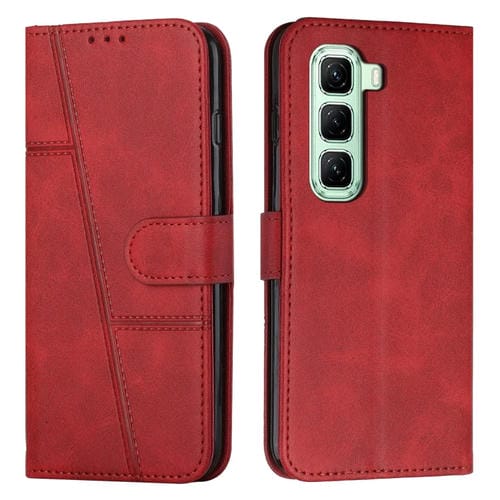 Funda de Cuero Textura Becerro con Costuras para Infinix Hot 50 5G (Rojo)