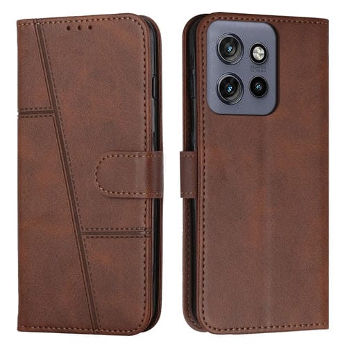 Funda de Cuero con Textura de Becerro y Hebilla para Motorola Edge 50 Neo (Marrón)