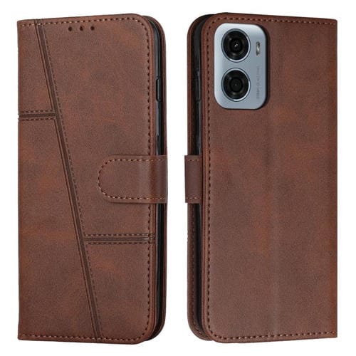 Funda de Cuero con Textura de Becerro y Hebilla para Motorola Moto G05 (Marrón)