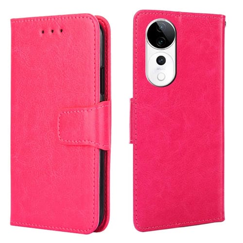 Funda de Cuero con Textura de Cristal para Teléfono Vivo S19 Pro (Rosa Rojo)