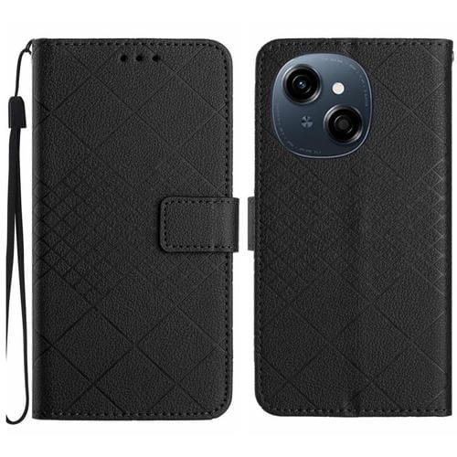 Funda de Cuero para Tecno Pop 9 4G y Spark Go 2025 4G con Textura Cuadrícula Rómbica (Negra)