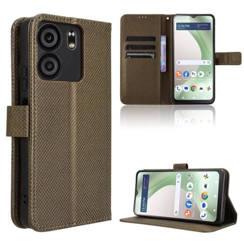 Funda cuero textura diamante para teléfono Blu View 5 (Marrón)