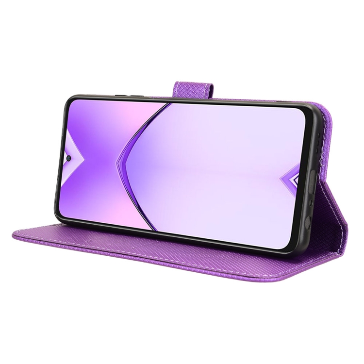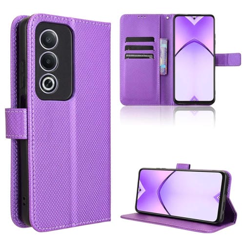 Funda de Cuero con Textura de Diamante para Oppo A3 Pro 5G (Morado)