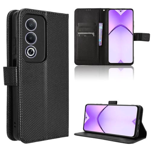 Funda de Cuero con Textura de Diamante Global para Oppo A3 Pro 5G (Negra)