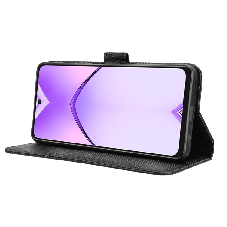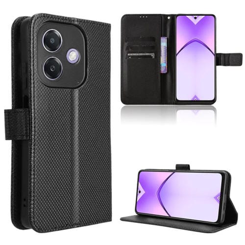 Funda de Cuero con Textura de Diamante para Oppo A3X 5G (India) (Negro)
