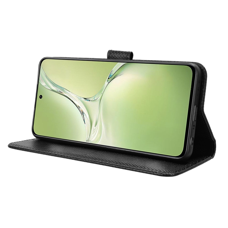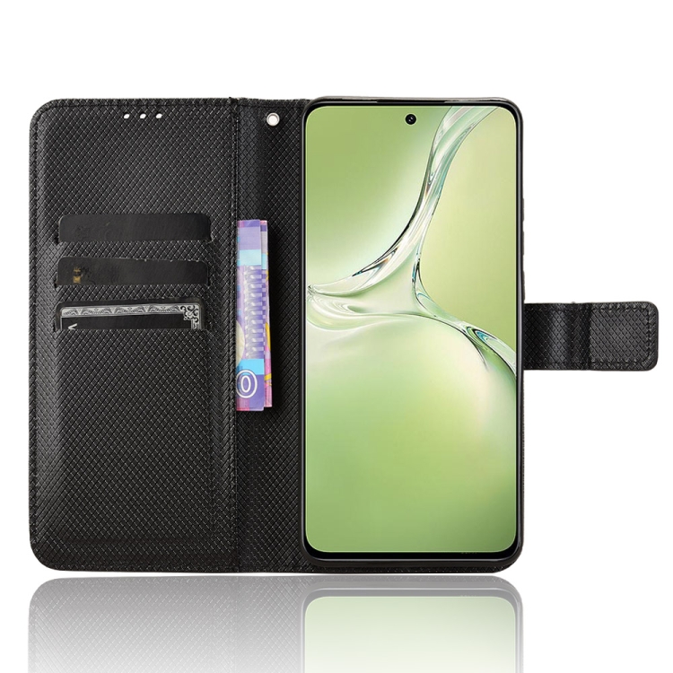 Funda de Cuero con Textura de Diamante para Oppo K12X 5G / Oneplus Nord Ce4 Lite 5G (Negra)
