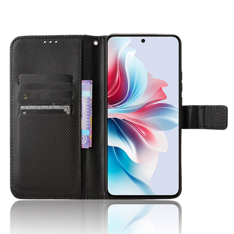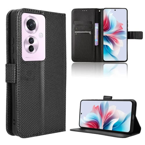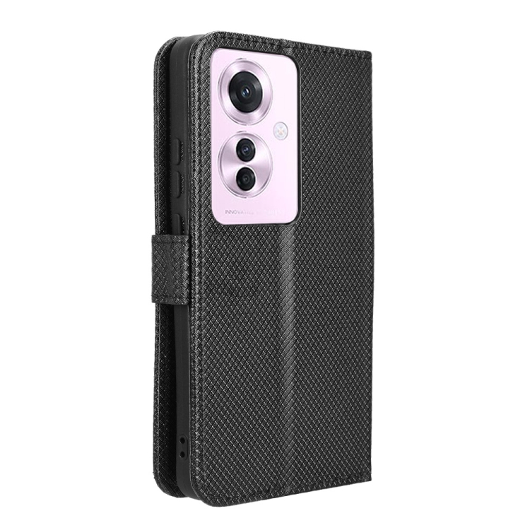Funda de Cuero con Textura de Diamante para Oppo Reno11 Pjh110 (Negra)