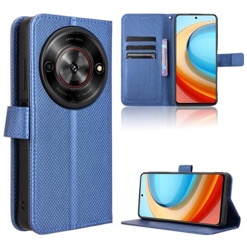 Funda de Cuero con Textura de Diamante para ZTE Blade A75 5G (Azul)