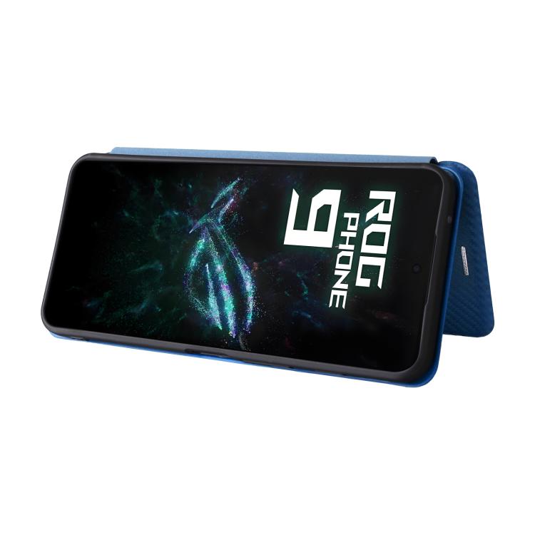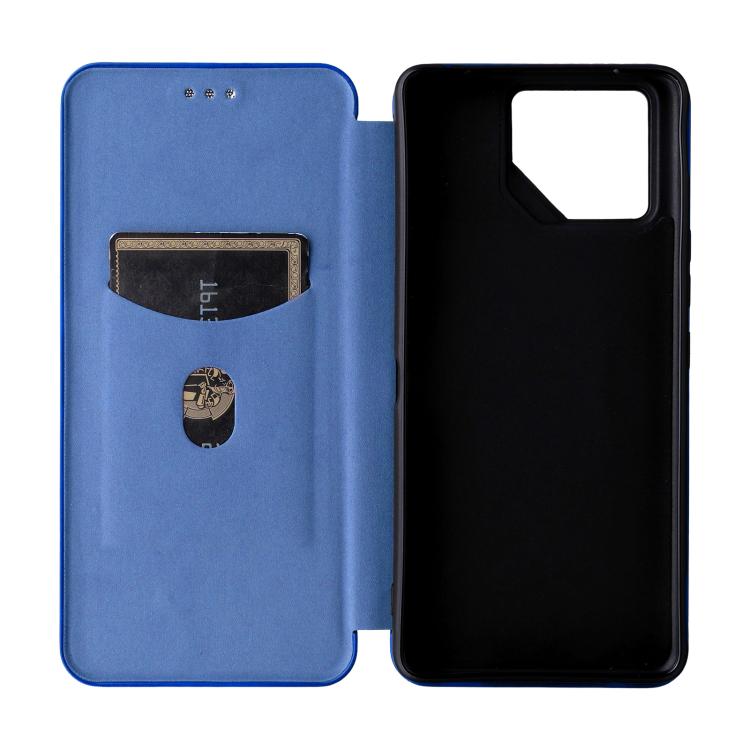 Funda de Cuero con Textura de Fibra de Carbono para Asus Rog Phone 9 (Azul)