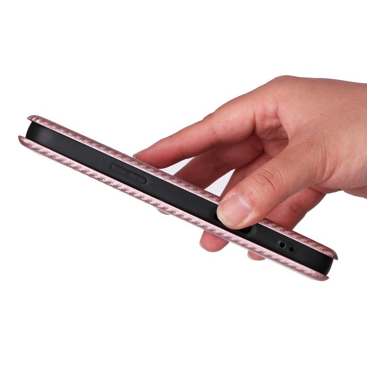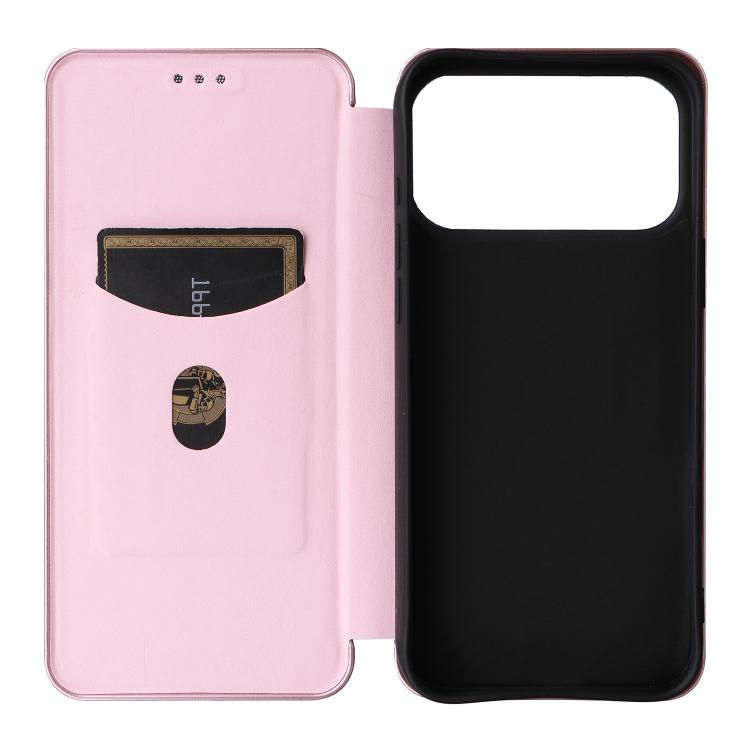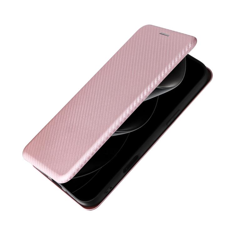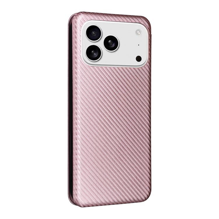 Funda de cuero con textura de fibra de carbono para iPhone 17 Pro Max (rosa)