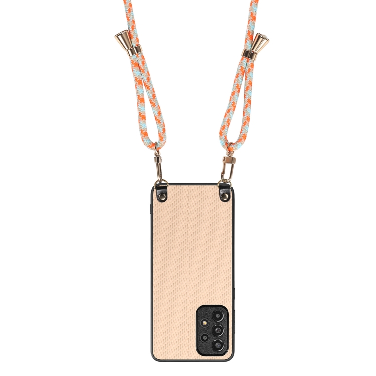 Funda Cuero Samsung Galaxy A21S Textura Fibra de Carbono Correa Cruzada (Caqui)