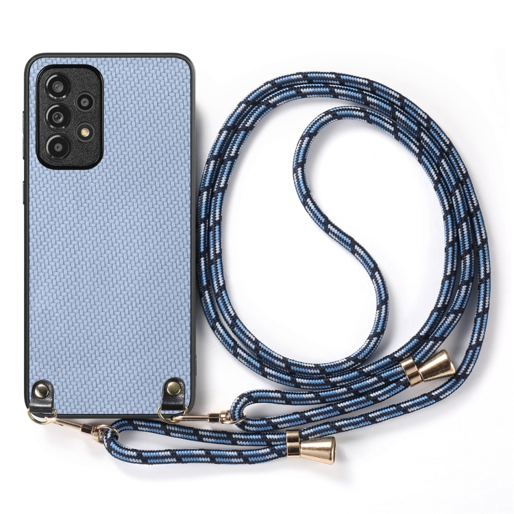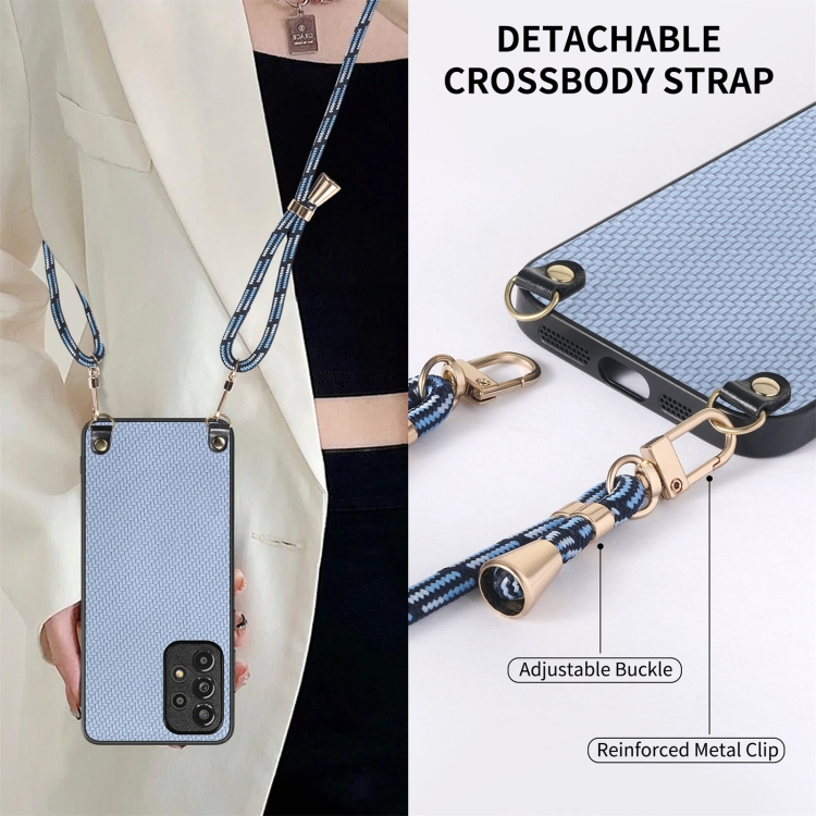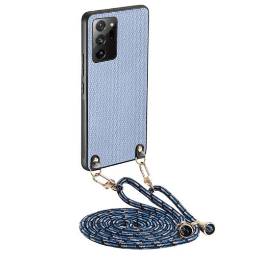 Funda Cuero Samsung Galaxy Note20 Ultra Textura Fibra de Carbono con Correa Cruzada (Azul)