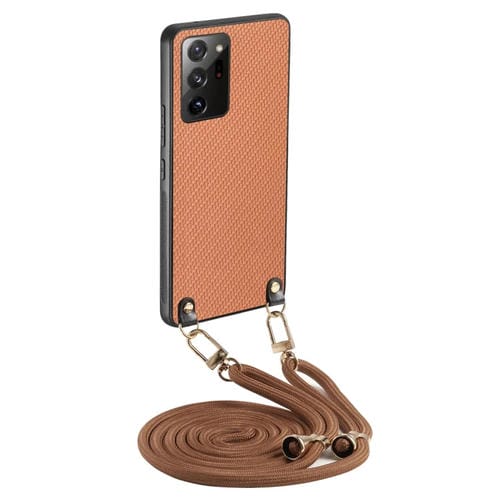 Funda Cuero Samsung Galaxy Note20 Ultra Textura Fibra de Carbono con Correa Cruzada (Marrón)