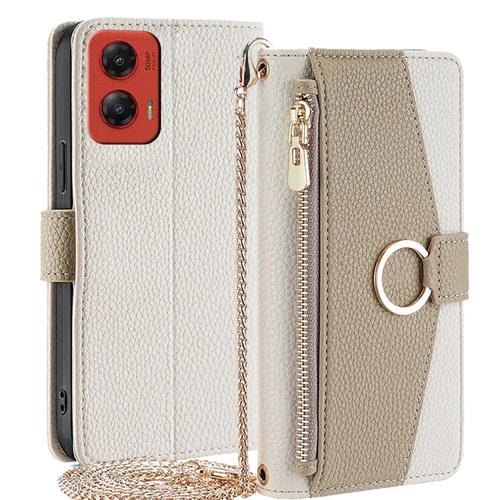 Funda de Cuero con Textura de Lichi Cruzada para Motorola Moto G Stylus 5G (2024) (Blanca)