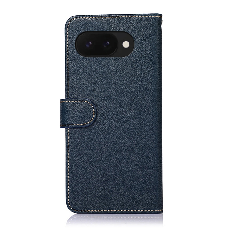 Funda de Cuero Khazneh Rfid para Google Pixel 9A (Azul) con Textura de Lichi
