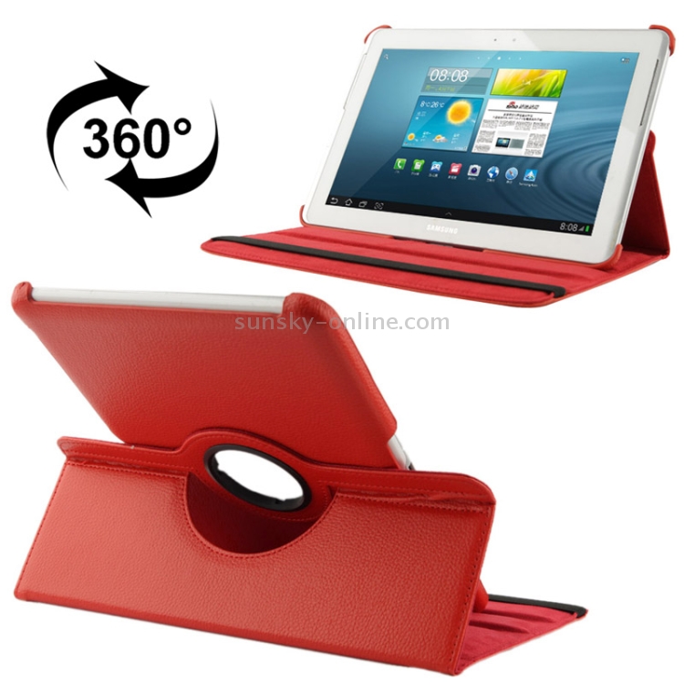 Funda Cuero Textura Litchi Giratoria 360° Soporte Galaxy Tab 2 (10.1) P5100 (Rojo)