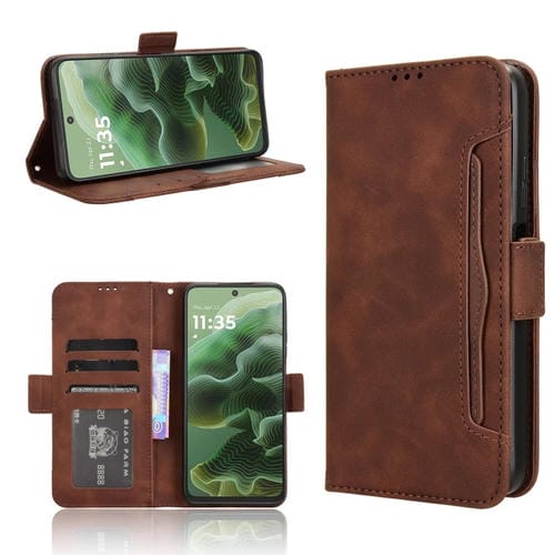 Funda de Piel con Textura de Becerro y Ranuras para Tarjetas Motorola Moto G35 5G (Marrón)