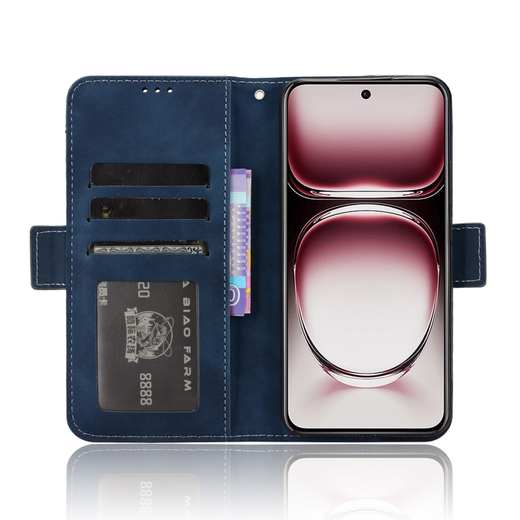 Funda de Piel con Textura de Becerro y Ranuras para Tarjetas para Oppo Reno12 Pro 5G (Azul)