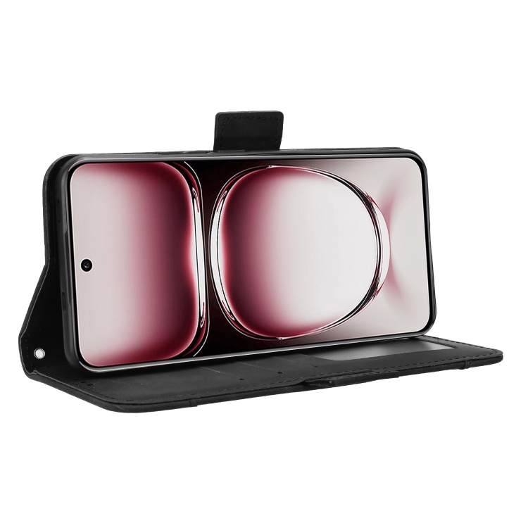 Funda de Cuero con Textura de Piel de Becerro y Ranuras para Tarjetas para Oppo Reno12 Pro 5G (Negro)