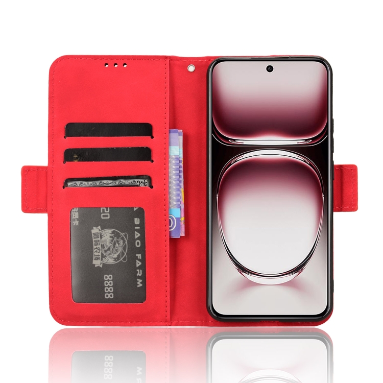 Funda de Piel con Textura de Becerro y Ranuras para Tarjetas para Oppo Reno12 Pro 5G (Roja)