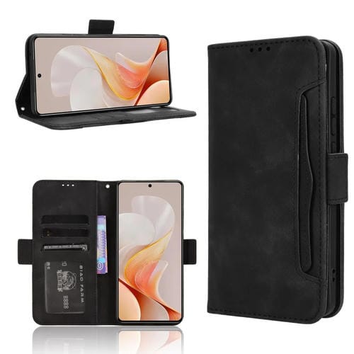 Funda de Piel con Textura de Becerro y Ranuras para Tarjetas para Vivo S19 5G (Negra)