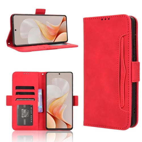 Funda de Piel con Textura de Becerro y Ranuras para Tarjetas para Vivo S19 5G (Roja)