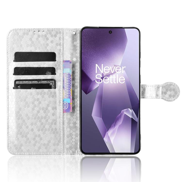 Funda de Cuero con Textura de Puntos Panal para OnePlus Ace 5 y Ace 5 Pro (Plateada)
