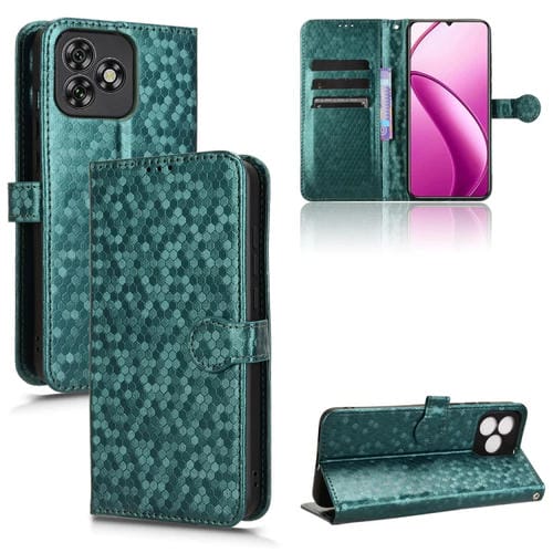 Funda de Cuero para Oukitel C53 con Textura de Puntos en Forma de Panal (Verde)