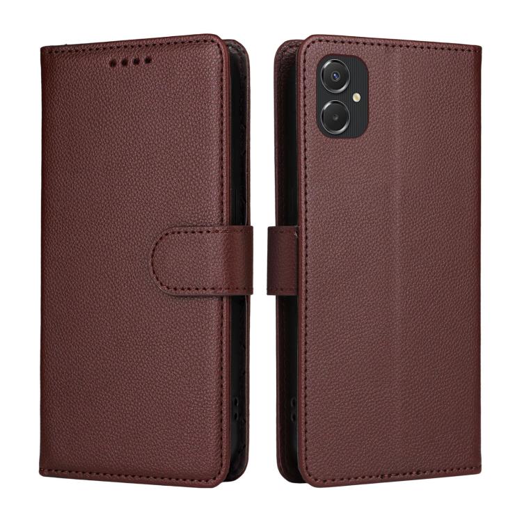 Funda de cuero con textura Litchi para Samsung Galaxy A06 4G/5G, con bloqueo RFID y capacidad para 3 tarjetas (marrón)