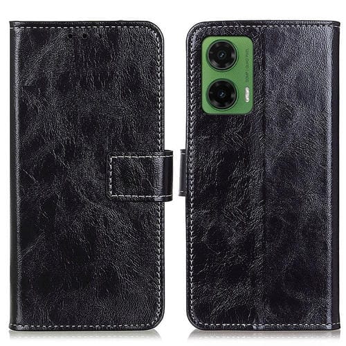 Funda de Cuero Retro Crazy Horse para Motorola Moto G35 5G (Negra)