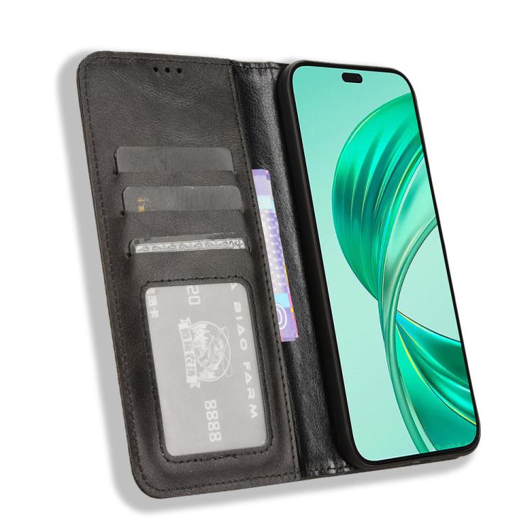 Funda de Cuero con Textura Retro y Hebilla Magnética para Honor X8C 4G (Negra)