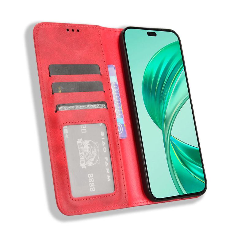 Funda de Cuero con Textura Retro y Hebilla Magnética para Honor X8C 4G (Roja)
