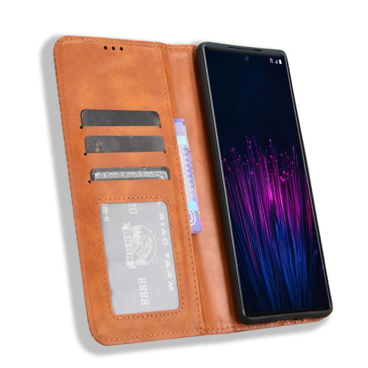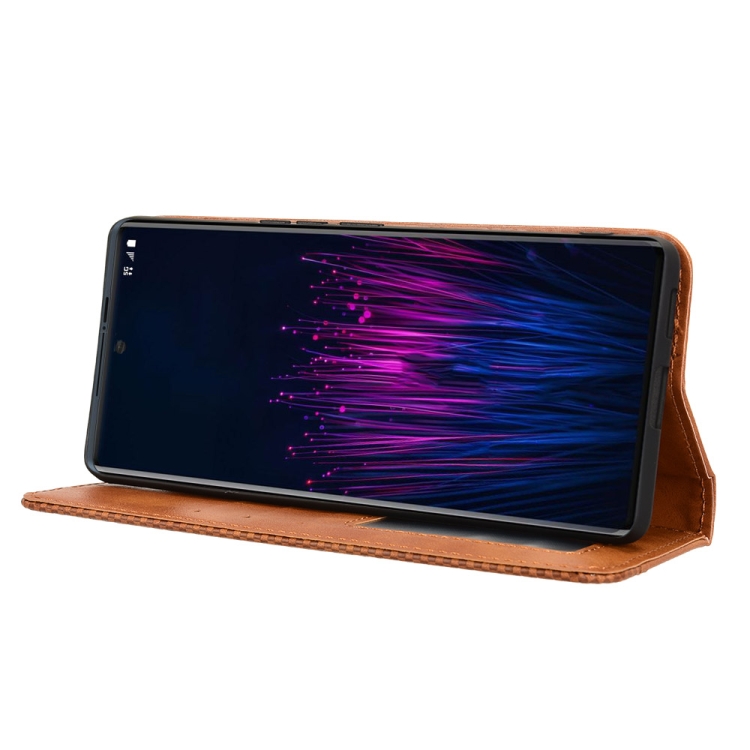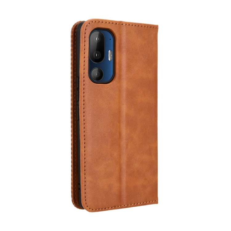 Funda de Cuero HTC U24 Pro con Textura Retro y Hebilla Magnética (Marrón)