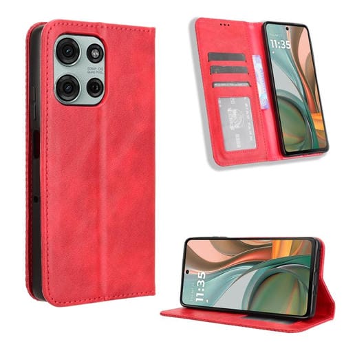 Funda de Cuero con Textura Retro y Hebilla Magnética para Motorola Moto G75 5G (Roja)