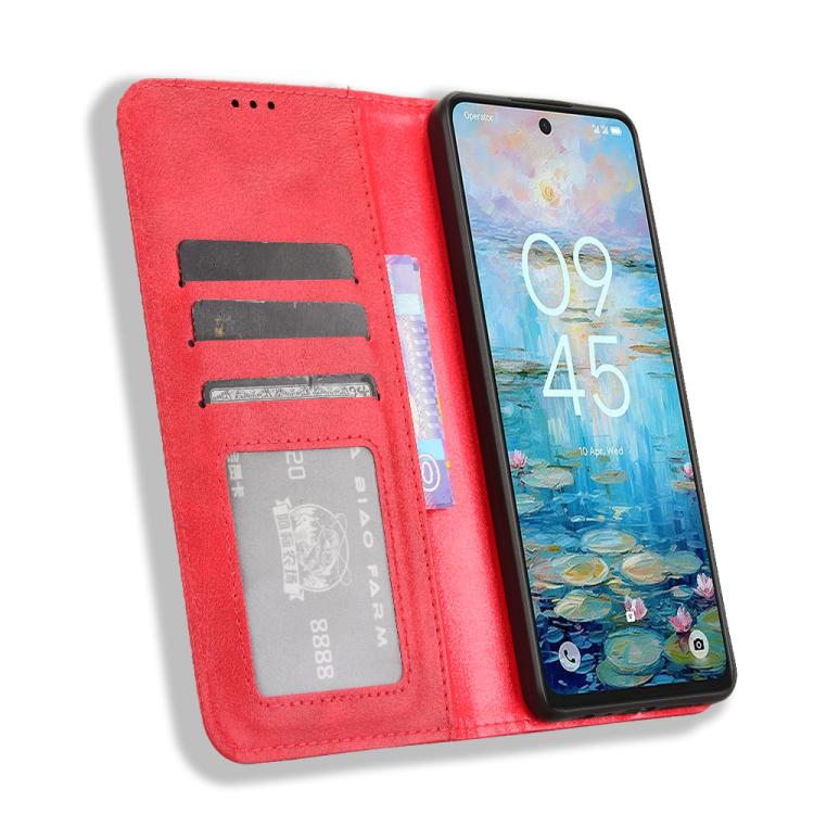 Funda de Cuero para TCL 50 Nxtpaper 5G y 50 Pro Nxtpaper 5G con Textura Retro y Hebilla Magnética (Rojo)