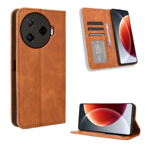 Funda de Cuero para Tecno Camon 30 Pro 5G con Textura Retro y Hebilla Magnética (Marrón)