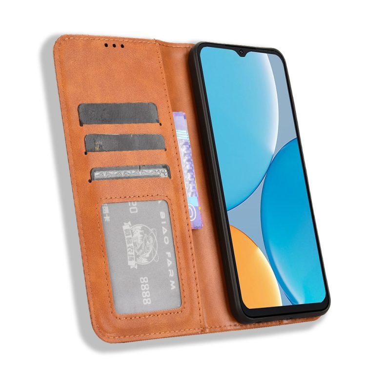 Funda de Cuero Itel A50C con Textura Retro y Hebilla Magnética (Marrón)