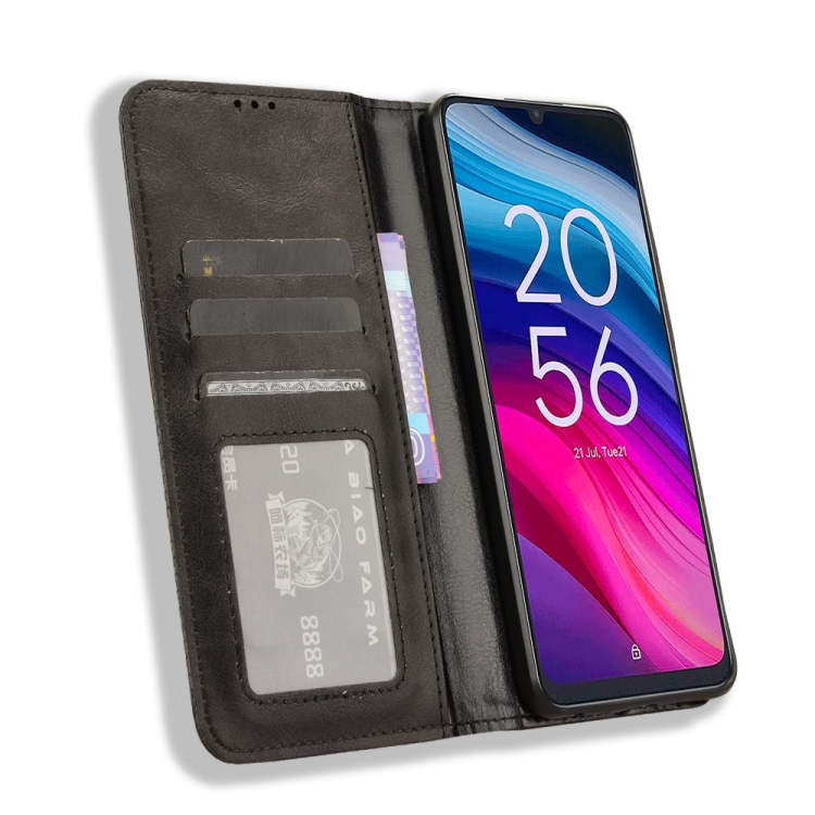 Funda de Cuero TCL 50 5G con Textura Retro y Hebilla Magnética (Negro)