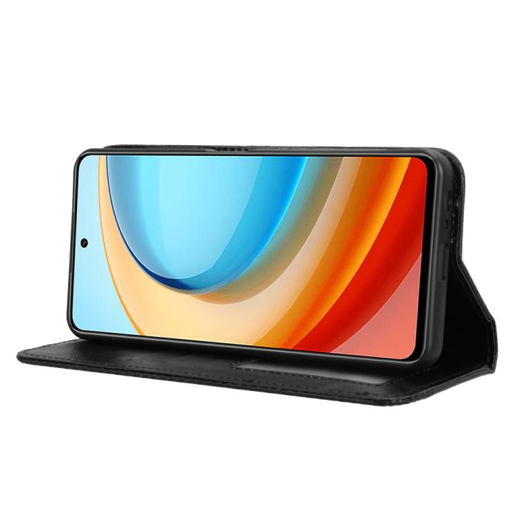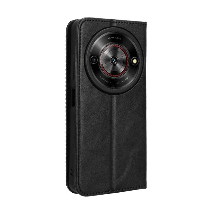 Funda de Cuero para ZTE Blade A75 5G con Textura Retro y Hebilla Magnética (Negra)